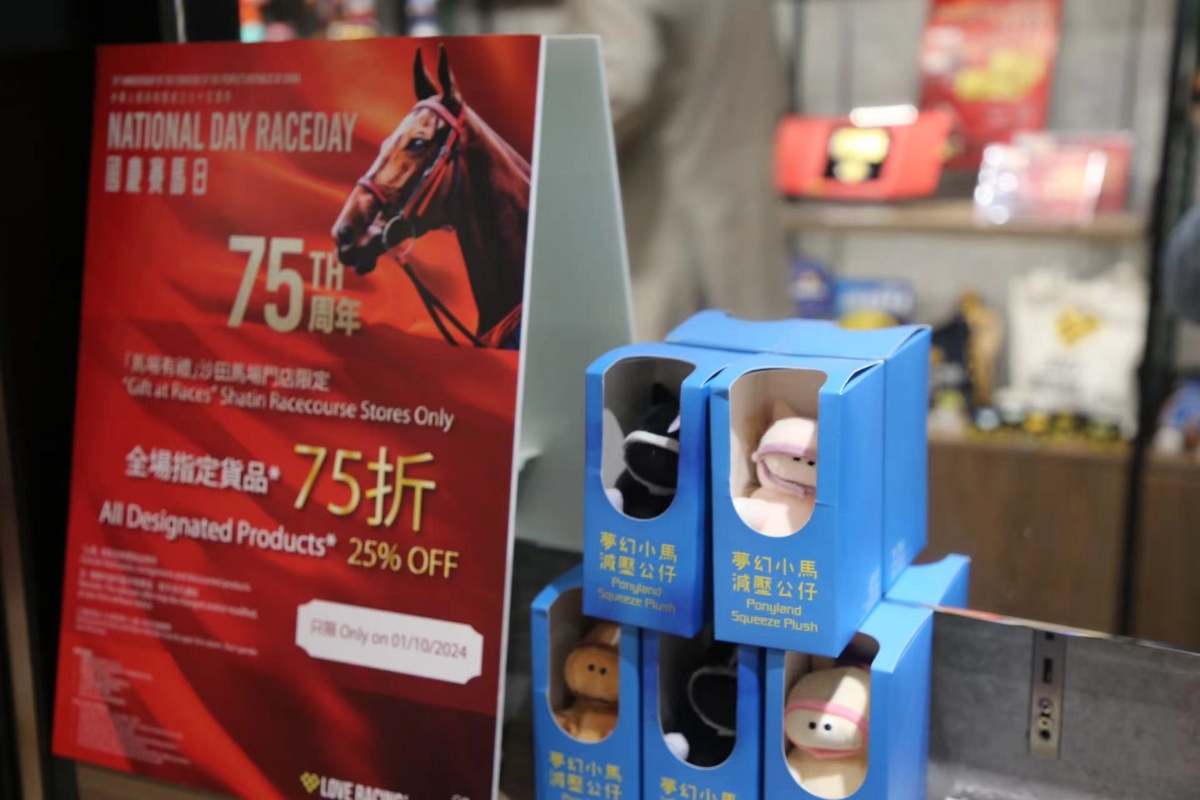 香港賽馬會圖片 香港餐飲零售行業推出優惠活動,馬場多款指定美食飲品當天以七五折發售,並推出國慶日主題的紀念封、金鈔金幣。紀念商品店客人眾多,不少精品上午便已經售罄。(完)