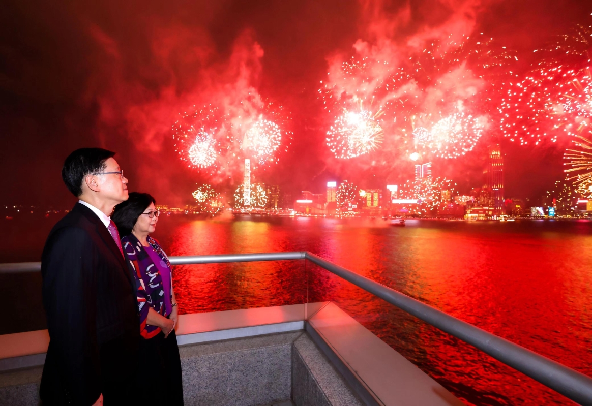 香港新聞網10月1日電 1日晚,香港舉行國慶煙花匯演。香港特區行政長官李家超出席煙花匯演晚會致辭時表示,今年的國慶是特區完成基本法第二十三條本地立法、完善地區治理後的首個國慶,是別具意義的國慶。今晚的煙花匯演,是國慶慶祝活動的重頭戲。當天晚上李家超上載與夫人賞煙花的照片,並表示國慶煙花匯演精彩紛呈,展現了香港獨特的魅力,盛載著對祖國繁榮昌盛的美好祝願。