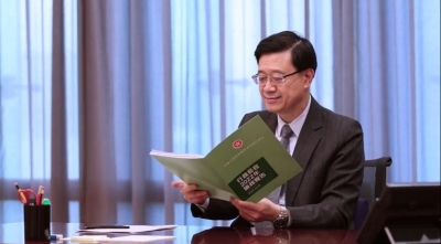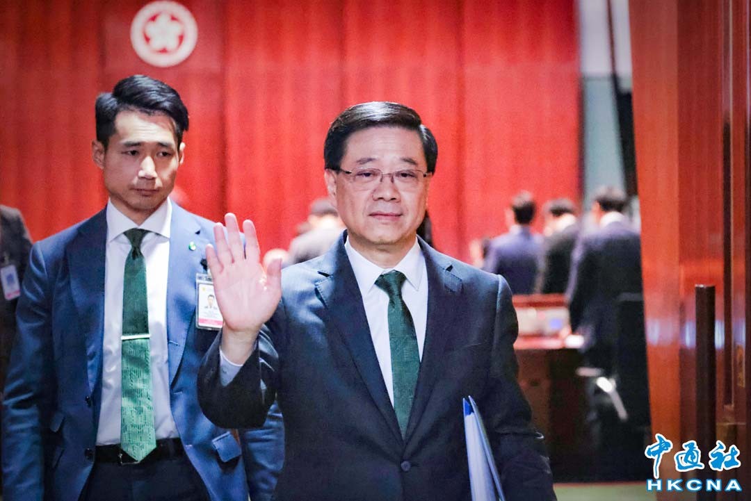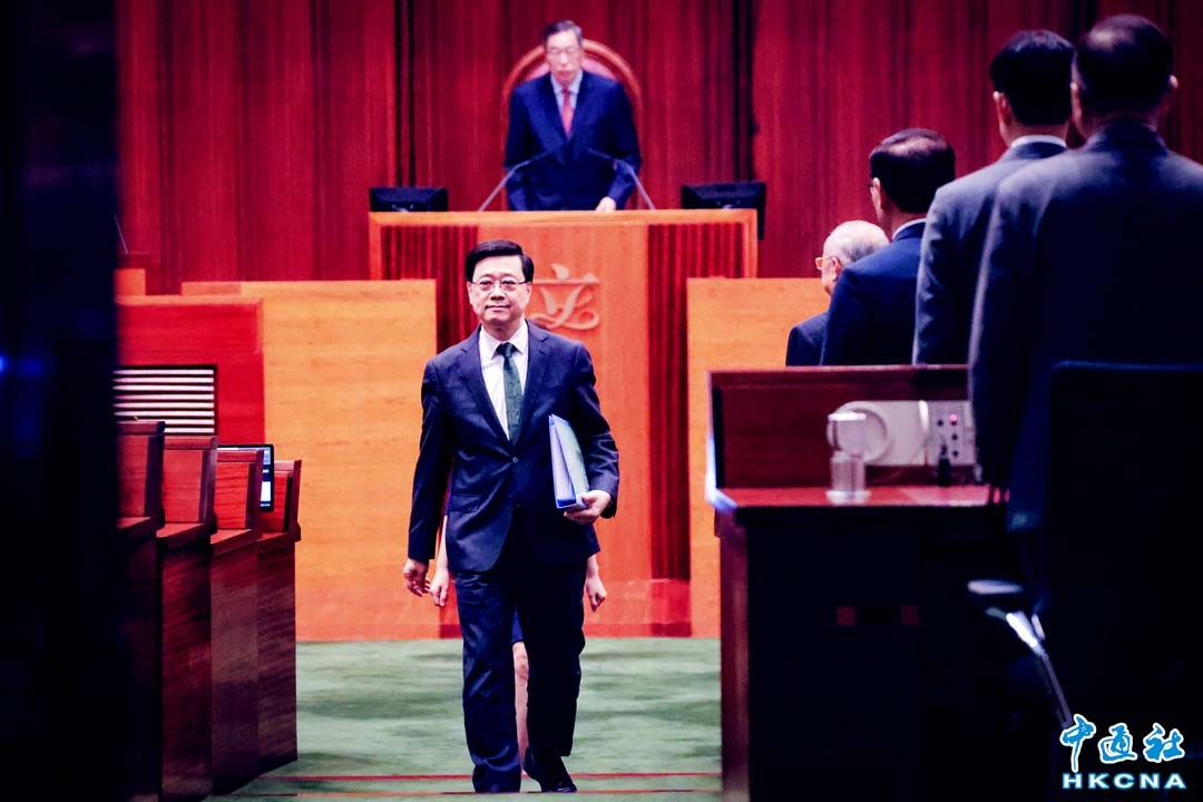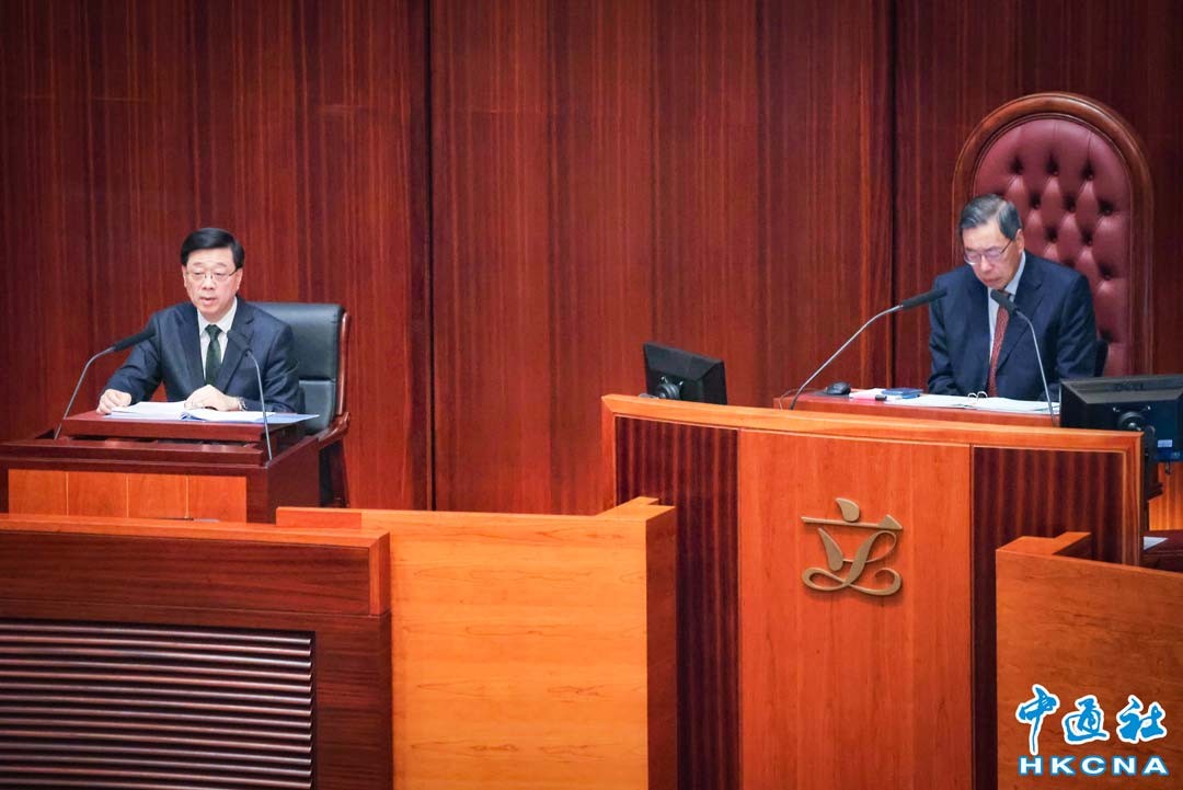 李家超用時2小時30分讀完施政報告 (謝光磊 攝)