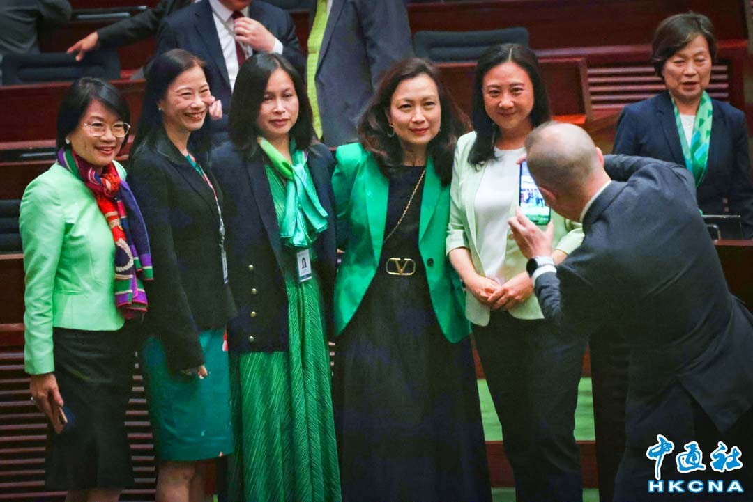 官員穿戴綠色衣服,神采奕奕,展現團結和諧 (謝光磊 攝) 李家超當日用時2小時30分讀完這份施政報告。他表示,自上任以來,提出各種措施推行改革,改變政府文化,強化系統、優化制度,為建設每天進步的香港而奮鬥,為市民有更好的住房、更好的教育、更好的生活而努力。