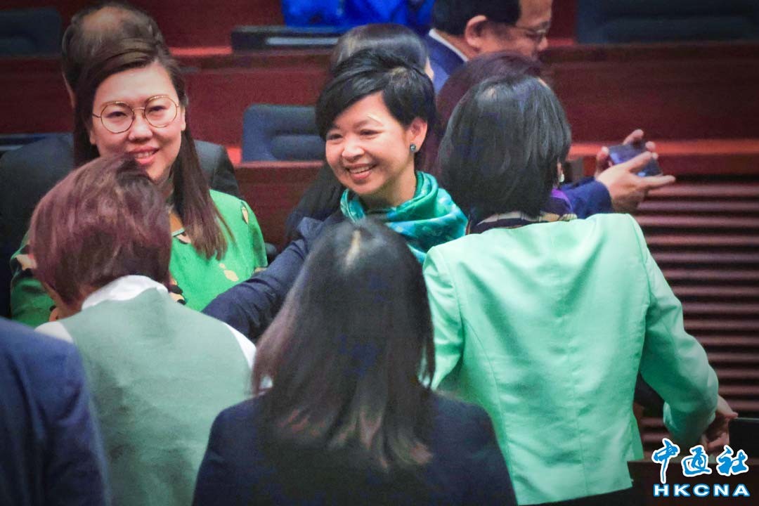 議員穿戴綠色衣服,神采奕奕,展現團結和諧 (謝光磊 攝)