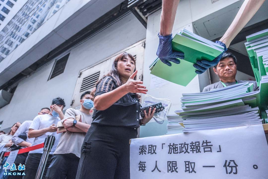 不少市民排隊領取施政報告及相關資料 (許其皓 攝)