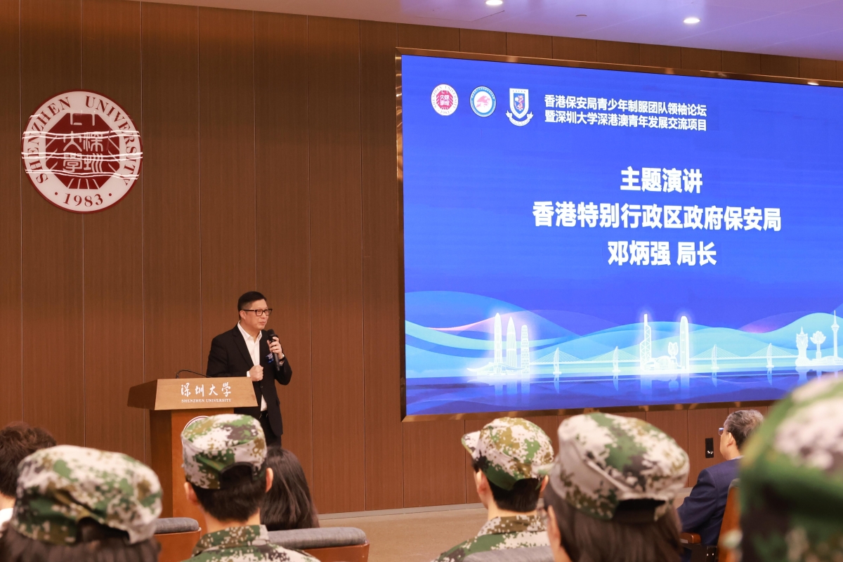 香港新聞網10月26日電 香港特區政府保安局局長鄧炳強26日到深圳出席新一屆“保安局青少年制服團隊領袖論壇”先導課程的啓動禮,為香港青年成員、“領袖論壇”合作夥伴深圳大學的學生和今屆加入的澳門青年來年的培訓活動揭開序幕。