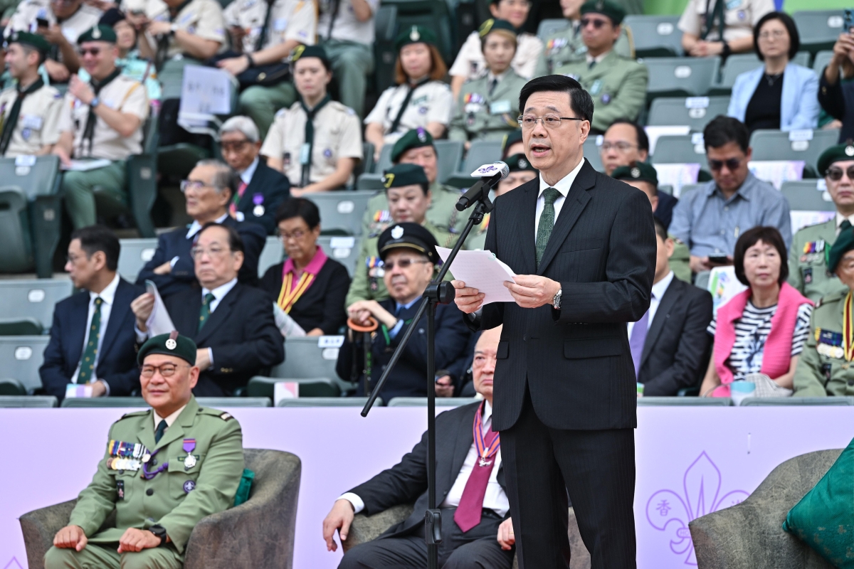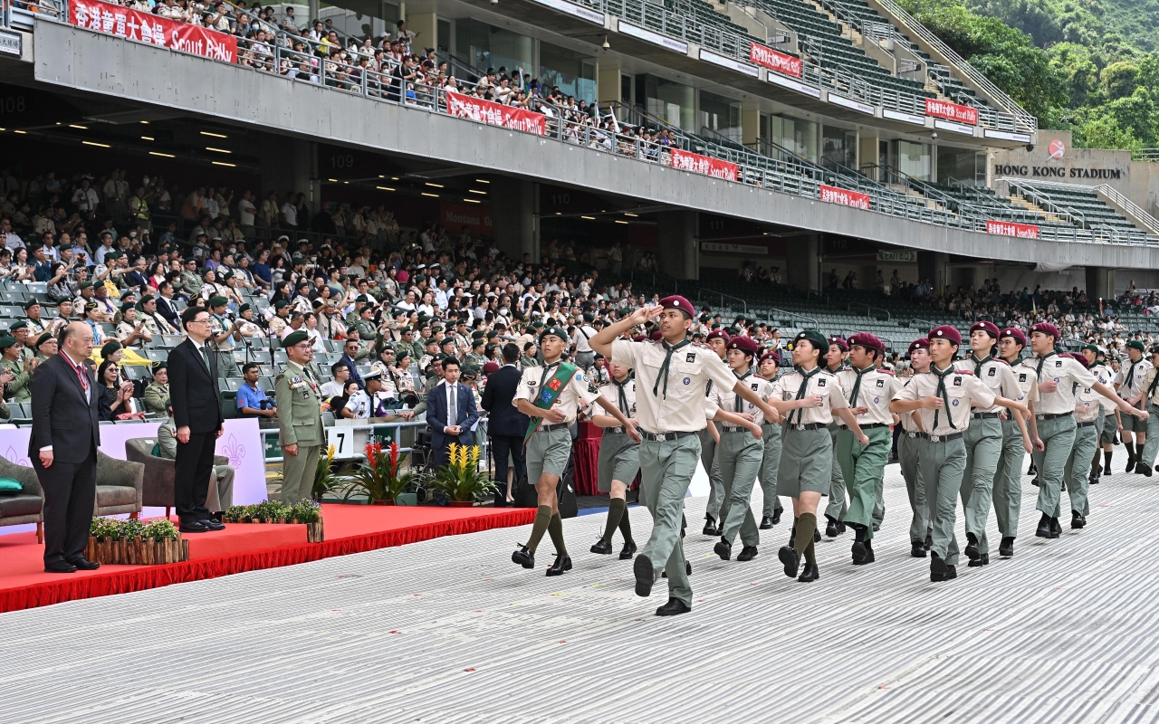 圖源:政府新聞處 大會操共有逾萬名童軍出席,並在李家超的見證下進行覆誓,以履行童軍服務社會的使命。李家超指出,香港童軍總會是香港規模最大的青少年制服團體,青少年成員超過3.4萬人,充分體現社會各界的認同和支持。 李家超指,總會透過多元化訓練以及參與本地、內地和國際活動,加深青年人的家國情懷和國際視野,包括籌辦新質生產力香港青年研學團,啟發和培育青年的創新思維及領導技能,為他們建立積極正向價值觀等,工作值得肯定。