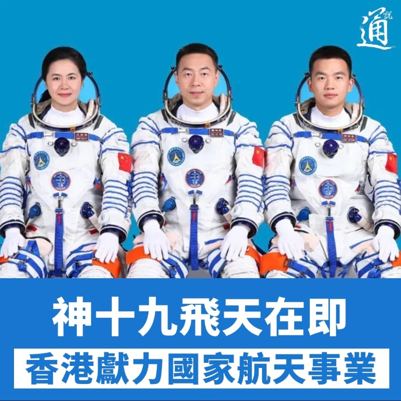 神十九飛天在即 香港獻力國家航天事業香港新聞網10月29日電 神舟十九號乘組公布、2030年前實現中國人登月、港澳載荷專家已全面融入航天員團隊……關於中國航天的好消息不斷傳來,香港亦搭乘國家發展快“船”, 為中國航天事業的發展貢獻出香港力量。 據中國載人航天工程辦公室消息,經任務總指揮部研究決定,中國瞄準10月30日4時27分發射神舟十九號載人飛船。執行神舟十九號載人飛行任務的航天員乘組由蔡旭哲、宋令東、王浩澤3名航天員組成,蔡旭哲擔任指令長。其中,航天員宋令東、航天員王浩澤為首次執行飛行任務的“90後”,航天員王浩澤為中國首位女性航天飛行工程師。
