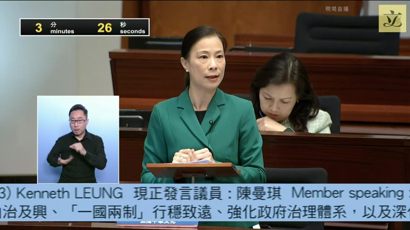 香港新聞網11月13日電 全國人大代表、全國婦聯執委、香港中律協創會會長、立法會議員陳曼琪在今日(13日)的立法會會議上,發表了對施政報告的支持,並感謝特區政府採納其21項建議。她強調了在維護國家安全及推動愛國主義教育方面的重要性,並提出了一系列具體建議。