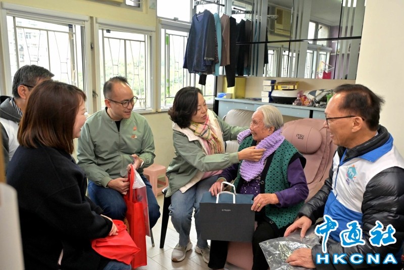 香港中通社1月27日電 臨近新春,香港特區政府主要官員27日到訪多區探訪市民,送上賀年福袋,分享節日歡樂。
