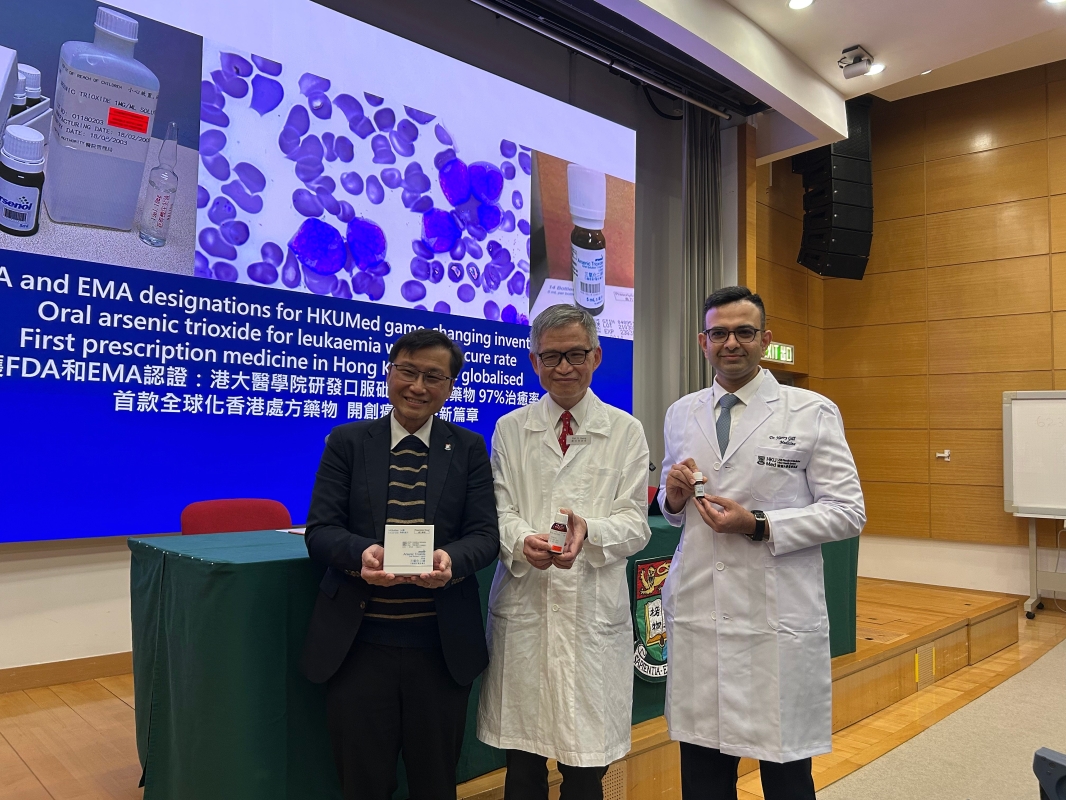 香港新聞網2月10日電 (記者 徐嘉儀)香港大學李嘉誠醫學院(港大醫學院)研究團隊成功研發的三氧化二砷(俗稱砒霜)口服藥劑(藥用口服砒霜)可用於治療急性早幼粒細胞白血病(APL,一種死亡率高的血癌),不僅是香港首款自主發明和製造的處方藥,也是首個獲得美國、歐洲和日本專利的藥物。10日,港大醫學院宣佈,成功轉化研發成果為臨床應用,將藥用口服砒霜納入APL患者的治療方案。過往臨床研究結果顯示,服用藥用口服砒霜的APL患者整體存活率超過97%,顯著減輕副作用和治療負擔。 研究團隊在藥用口服砒霜治療APL已進行超過20年的廣泛研究。在一項為期15年的研究中,超過400名復發性APL患者接受以藥用口服砒霜為基礎的治療方案後,其分子生物學緩解率和五年整體存活率分別高達100%和80%。 隨後,研究團隊將藥用口服砒霜作為首次緩解後的維持治療,喜證五年無白血病存活率和整體存活率分別達至90%和97%。下一步是將藥用口服砒霜納入新確診APL患者的第一線誘導治療,並達至五年內100%無白血病的存活率和整體存活率。綜合目前的研究結果,港大醫學院的研究人員已制定一套治療計劃,重點包括及早開始治療、提供必要的支援性護理,以及在第一線誘導治療中使用藥用口服砒霜。這套治療計劃能有效減低APL併發症所引致的早期死亡率。 研究團隊正在香港測試一種全口服治療方案(簡稱AAA),即由藥用口服砒霜(Oral-ATO)、全反式維甲酸(ATRA)及抗壞血酸組成,並根據不同APL患者的風險進行調整。