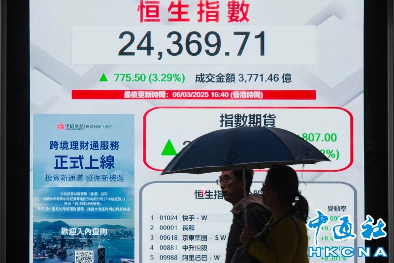 香港中通社3月6日電(記者 梁嘉軒)受市場關注內地發佈新通用型AI,及美國關稅政策再次調整,港股6日大升775點。港股於上一個交易日同樣做好,帶動恆生指數創下逾三年的高位。