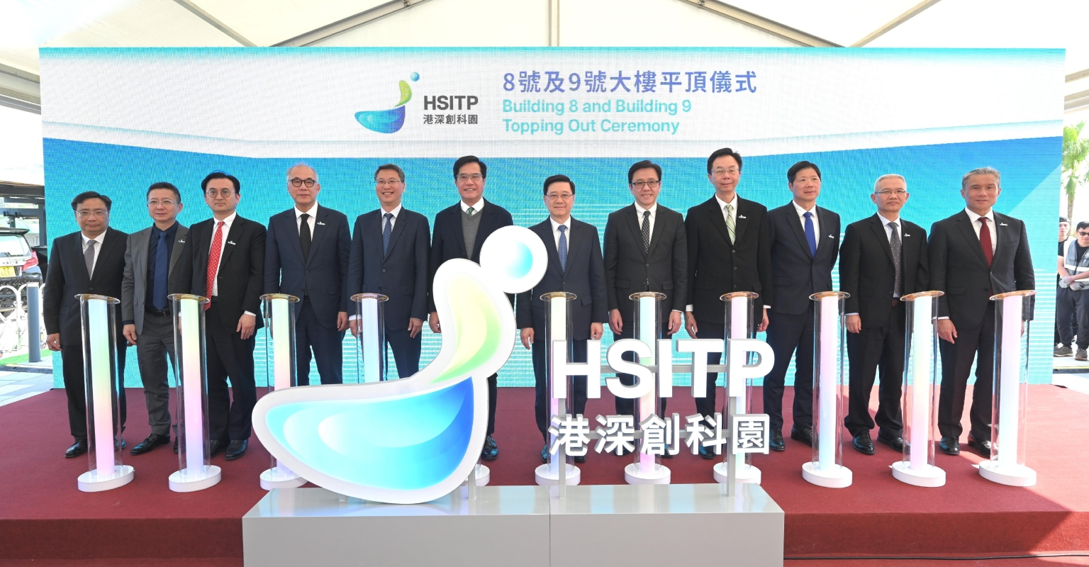香港特区行政長官李家超今日(3月21日)出席港深創新及科技園8號及9號大樓平頂儀式。圖示(左五起)創新科技及工業局常任秘書長暨港深創新及科技園有限公司董事會主席麥德偉、署理財政司司長黃偉綸、李家超、創新科技及工業局局長孫東教授,以及其他嘉賓主持亮燈儀式。香港特區政府新聞處圖片 8號和9號大樓是“濕實驗室”大樓,可提供符合不同生物、化學實驗要求的設備。11號大樓則是人才公寓,可以“拎包入住”。 當天,香港特區行政長官李家超主持典禮並致辭指,香港特區在創新科技領域和港深創科合作踏上另一台階,未來將以四個理念,開啓創科新局面。 第一,以建設為基,打造創科高地。特區政府正全速推動第一期餘下5幢大樓的建築,預留37億港元加快完成首期全部建設。第二,以改革為綱,煥發創新活力。特區政府會拆牆鬆綁,同內地相關部門探討合作人才、資金、數據等方面的合作。第三,以融合為意,共築國家棟樑,將河套打造成為高端科技的示範田。第四,以合作為要,共聚各界力量,利用市場力量,推動科技發展,並在今年完成第二期的詳細規劃。 據悉,港深創新及科技園第一期總樓面面積约100萬平方米,將提供濕實驗室或先進製造研發大樓、乾實驗室或辦公室、產學研、人才公寓、訪客住宿設施、商業和附屬設施等。(完) 【編輯:馬華】