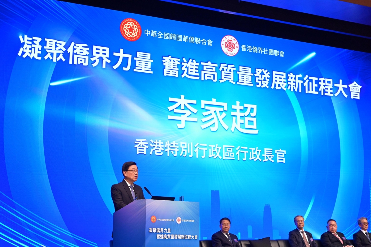 香港特區行政長官李家超今日(4月10日)在凝聚僑界力量 奮進高質量發展新征程大會暨學習全國兩會精神分享會致辭。香港特區政府新聞處圖片 李家超當日出席由中華全國歸國華僑聯合會、香港僑界社團聯會主辦的“凝聚僑界力量 奮進高質量發展新征程”大會。他致辭表示,香港的歸僑、僑眷和居港外籍華人超過一百萬,一直發揮所長。他勉勵僑界用好自身優勢,從三方面展現中華民族堅韌不屈的精神,包括堅守民族大義、堅定破壁突圍、堅持民心相通。 面對不公、不義的貿易壁壘,李家超勉勵僑界積極在家鄉投資興業,把握國家龐大的發展機遇;在國際輿論場全力發聲,指出保護主義的謬誤,一同推廣自由貿易。 李家超勉勵僑界搭建更多國際高端合作平台,促進海內外企業人才來到中國內地和香港,向世界呈現真實、立體、全面的美好中國。希望僑胞繼續發揮僑智、貢獻僑力,與特區政府一同努力,加強國際交往合作,推動經濟高質量發展。 中華全國歸國華僑聯合會主席萬立駿、中央政府駐港聯絡辦副主任尹宗華、中央政府駐港維護國安公署副署長孫青野、香港僑界社團聯會首席主席余國春、香港僑界社團聯會會長黃楚基等嘉賓亦出席並主禮是次活動。(完) 【編輯:馬華】