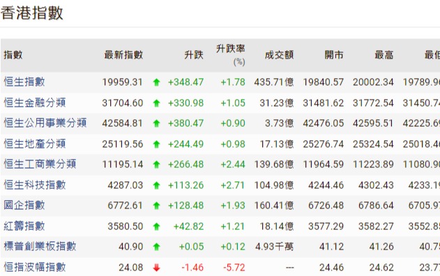 香港中通社圖片 國企指數升128點或1.5%,報8589點;科技指數升60點或1.2%,報5315點。 當日,恒指高開65點,其後升幅擴大,一度高見23709點,升幅達逾370點。新股寧德時代首日掛牌受追捧,全日收306.2元,較上市價263元高16.4%,成交82.8億元;不計手續費,每手100股賬面賺4320元。 實德金融策略研究部首席分析師郭啟倫預計,寧德股價在短期內將穩定運行於250元以上,並有望在今年下半年成為股王,年終前上望380元。 翰森製藥升5.7%,為表現最好藍籌;阿里健康跌5.2%,為表現最差藍籌。醫藥股表現突出,三生製藥和輝瑞達成癌症藥物許可協議,全日升32.3%;石藥旗下一款肺癌藥物,獲美國食品藥品監督管理局授予第三項快速通道資格,全日升6.1%。 小米首次發布手機SoC芯片開始大規模量產,小米升4.7%,成交123.6億元。天風證券預計小米發布自研芯片後,中國國產手機高端競爭格局或開始加速變化,而龍頭具備自研底層硬件能力的手機廠商的市佔率提升,或是小米估值提升的核心邏輯之一,維持“買入”評級。(完) 【編輯:馬華】