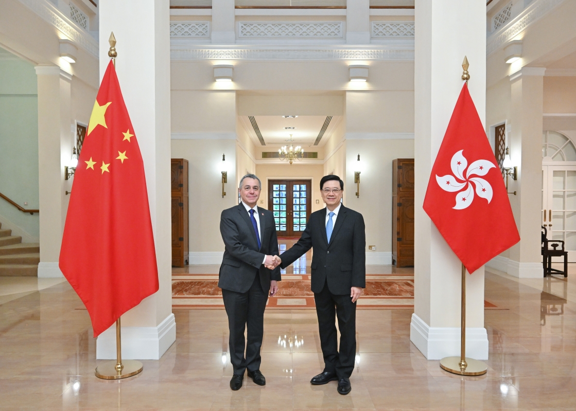 行政長官李家超(右)與瑞士聯邦委員兼外長卡西斯(左)會面。圖源:行政長官辦公室