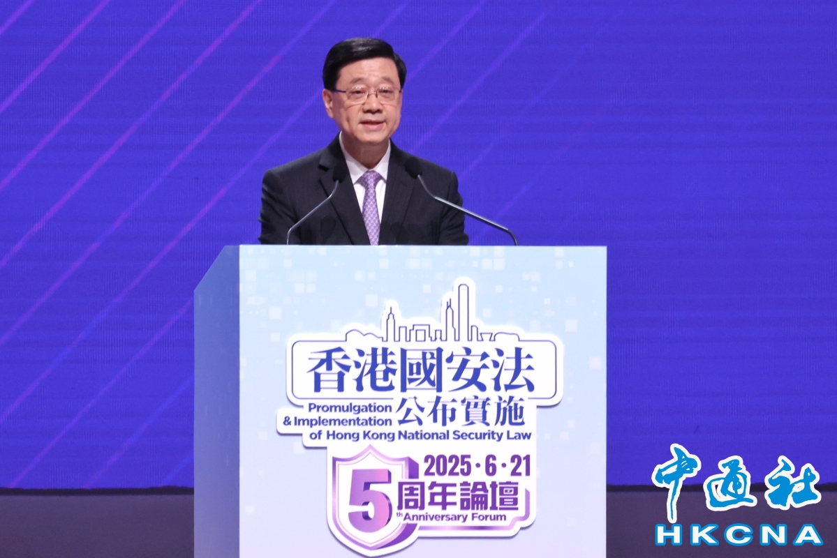 香港中通社6月21日電 (記者 張明臻)香港國安法公佈實施五周年論壇開幕典禮21日上午在香港會展中心舉行,特區行政長官李家超發表主旨致辭指出,有香港國安法保駕護航,香港的發展和改革定可不斷穩步推進。