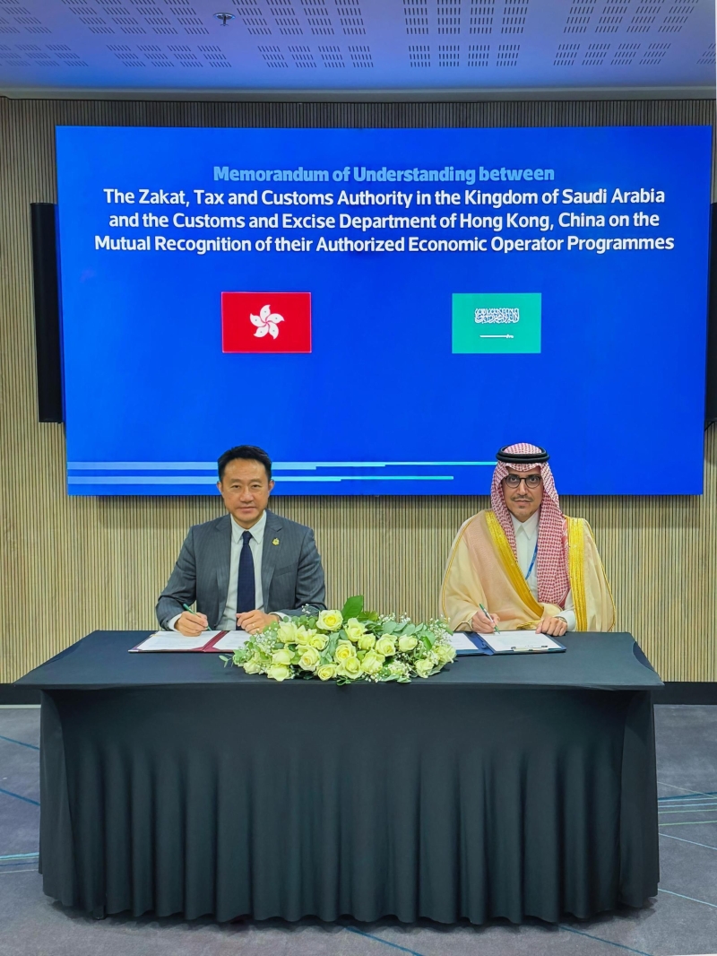 圖示海關關長陳子達(左)與沙特阿拉伯天課、稅務與海關總局局長Suhail bin Muhammad Abanmi(右)於六月二十六日在《認可經濟營運商互認備忘錄》簽署儀式後合照。香港特區政府新聞處圖片 陳子達於6月23日至28日期間,率領代表團代表中國香港,並以世界海關組織亞太區副主席身分,出席世界海關組織第92屆政策委員會會議及第145至146屆海關合作理事會會議,更於後者達成上述兩項海關合作。 其中,陳子達於6月26日與沙特阿拉伯天課、稅務與海關總局局長Suhail bin Muhammad Abanmi簽訂《認可經濟營運商互認備忘錄》,標誌著香港海關進一步拓展中東地區認可經濟營運商互認安排網絡。此備忘錄不但加強兩地的貿易聯繫,同時亦提升了雙方認可經濟營運商的競爭力,接通更多海外商機。是次簽訂的備忘錄使香港與其他海關組織簽訂的互認安排及備忘錄增至17份。 另外,陳子達於6月27日亦與南非稅務署署長Edward Kieswetter簽訂《海關合作及行政互助備忘錄》,加強資訊交流以打擊跨境犯罪活動,並促進貿易便利化。目前,香港海關已經與中國國家海關總署、澳門海關及32個海外海關組織合共簽訂34個類似的合作安排。(完) 【編輯:馬華】