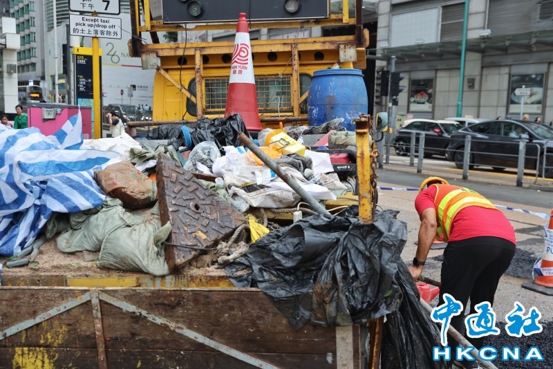 8月5日下午,香港雨勢逐漸減小,香港市面快速恢復正常。圖為當日下午,有工作人員在對路面進行清理。(香港中通社記者 謝光磊 攝) 香港中通社圖片 此次暴雨來勢洶洶,香港天文台在4日晚發出紅色暴雨警告信號,5日清晨5時50分發出最高級別的黑色暴雨警告信號,至下午5時05分才改發黃色暴雨警告信號。 特區政府超前部署,早在4日晚,各部門已做好準備。特區政府緊急事故監察及支援中心深夜持續運作,各部門首長級人員實時密切監察全港市面情況,協調各政府部門全力出動,處理水浸、山泥傾瀉、塌樹和道路阻塞等情況。 香港的柴灣及黃大仙是過去暴雨容易水浸的地點,渠務署派出緊急應變隊伍主動巡查。暴雨期間,共派出180隊緊急應變隊伍前往各區,動用約620人及多部強力排水機械人,處理水浸個案及清理渠道。 截至5日下午三時,黑雨信號還未除下,29宗水浸個案中,24宗個案已完成處理,水浸路面的泥水和雜物被迅速清理,受影響路段即時重開。 天文台發出山泥傾瀉警告後,土力工程處迅速啟動緊急控制中心,就15宗山泥傾瀉報告安排人員視察事故現場,安排斜坡緊急復修工程。在路政署轄下的緊急控制中心協調下,香港南區、大埔和西貢等發生山泥傾瀉的地區,山泥被迅速清理,路面至少有一條行車線予公眾使用。 堅守崗位的,還有各紀律部隊前線人員。警方在多區協助受暴雨影響的居民,處理因水浸被困的車輛和清理鄉郊淤塞的渠口,疏導交通。消防處截至下午4時共處理42宗被困升降機報告、175宗自動報火警系統報告、36宗樹木倒塌報告、7宗山泥傾瀉報告等,協助市民到安全地方。 暴雨下,香港葵盛西邨一座大廈短暫停電,房屋署立即通知相關組別跟進處理,經搶修後現時電力供應已恢復。前線人員緊守崗位,加強巡查,保障公共屋邨居民安全,確保各屋邨設施整體運作未受影響。 民政事務總署共開放15個臨時庇護中心,供有需要市民入住。各區民政事務處動員區議員、地區“三會”委員及關愛隊,向區內易受水浸影響的居民發放資訊。 下午5時05分,天文台改發黃色暴雨警告信號。記者在市區所見,市民如常出行,超市、餐廳、商場人流一如往常。公共交通如巴士、港鐵、電車等幾乎沒有影響,大部分巴士路線已恢復服務。