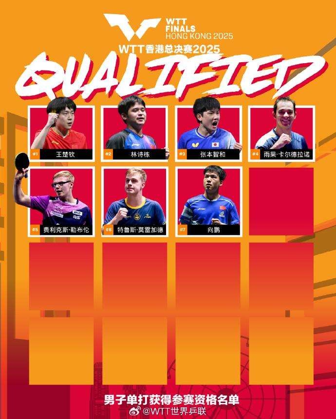 女單:孫穎莎、王曼昱、陳幸同、蒯曼、陳熠、王藝迪 男單:王楚欽、林詩棟、向鵬 混雙:林詩棟/蒯曼 作為賽季收官戰,WTT香港總決賽由WTT總決賽積分榜決定參賽資格。男子及女子單打陣容將由總決賽積分榜排名前16的運動員組成,混雙的8對參賽組合則由總決賽積分榜排名前7的組合外加一對東道主外卡組合構成。 (完) 【編輯:譚暢】