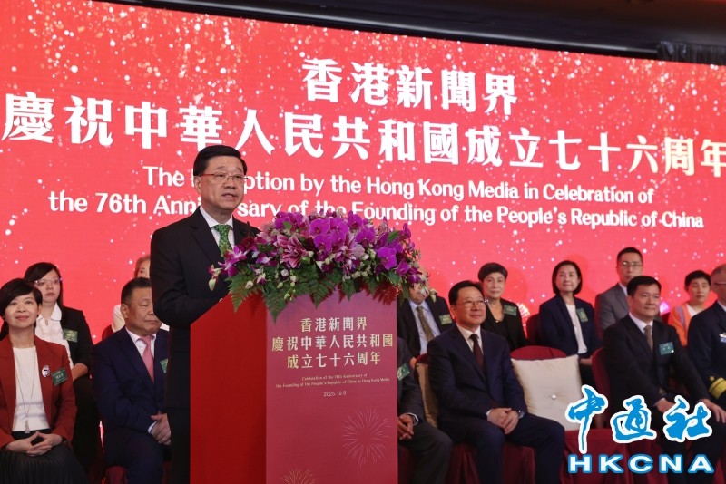 圖為香港特區行政長官李家超致辭。(香港中通社記者 謝光磊 攝) 香港中通社圖片 當天,香港特區行政長官李家超,香港中聯辦主任周霽,駐港國安公署副署長陳楓,外交部駐港公署副特派員花有,解放軍駐香港部隊副司令員譚志偉,特區政府政務司司長陳國基,財政司司長陳茂波,紫荊文化集團董事長許正中,香港新聞界國慶籌委會主任委員、香港新聞工作者聯會主席、香港大公文匯傳媒集團董事長李大宏等出席主禮。 李家超致辭時表示,香港是國際城市,政府制定的經濟與發展政策,需要新聞界用專業筆觸、鏡頭,轉化為生動的事實,讓全球受眾不僅看到“硬”的建設和政策,更能感受到“軟”的機遇與價值。希望新聞界用鏡頭捕捉時事,用文字傳遞價值,讓世界各地讀者更深入瞭解香港的最新發展和潛在機遇,助力經濟發展,推動社會進步。 周霽致辭時表示與香港新聞界分享三點看法:一是眼裡有家國。要始終胸懷祖國、心繫民眾,多從中國發展奇跡中解讀成功密碼,多用老百姓的笑臉闡釋中國式現代化,多用國際社會聽得懂的語言和方式傳播中國聲音,講好“一國兩制”的制度優勢和價值理念,向世界展示真實、立體、全面的中國,展現可信、可愛、可敬的中國形象。二是筆下有擔當。要繼續全力支持行政長官和特區政府依法施政,精准解讀施政舉措,多為發展加油鼓勁,多為民生建言獻策。三是心中有理想。要牢牢把准“一國兩制”新階段香港傳媒的職責使命擔當,既做信息服務者,也做價值引領者;既做民意傳遞者,也做共識凝聚者;既做“問題意識”的瞭望者,也做“建設思維”的持份者,以實際行動進一步彰顯新聞工作者的堅守和追求。 李大宏致辭指,香港正昂首闊步邁向由治及興新階段,新聞工作者要以“局中人”的責任擔當,厚植家國情懷,凝聚各方力量投身民族復興大業;要以“運動員”的拼搏精神,“下深水”摸實情,為改革破局建言獻策;要以“引領者”的寬廣視野,打破圈層壁壘,不斷擴大傳播力和影響力,積極講好中國故事和香港故事。 香港新聞界首次國慶酒會在1956年舉行,一直延續至今,成為團結愛國愛港傳媒人重要平台。當天活動的嘉賓胸牌設計別具匠心,特別採用與香港最新施政報告封面一致的綠色為主色調,體現香港新聞工作者在傳播資訊、引導輿論、服務社會的過程中與特區政府攜手並肩。(完) 【編輯:王瑤】