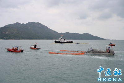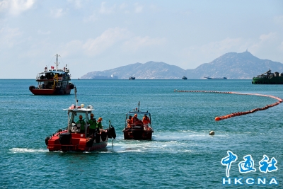 圖為油污清理隊伍架設圍油欄作海上屏障,防止油污擴散。 香港中通社圖片 聯合演習模擬一艘運油船和一艘貨櫃船相撞,導致運油船溢漏燃油,以及五個載有氫氧化鈉的貨櫃墮海。其後,油污應變小組到場清理溢漏在海面的油污,而消防處及其他應變小組亦被派往現場,在有需要時控制及處理有可能泄漏的氫氧化鈉,以免對附近環境和設施造成威脅。 演習中,各參與單位採取了一連串的模擬應變行動。在模擬油污事故發生後,運油船在南丫島下尾灣對開海面拋錨,救險隊伍轉卸損毀船艙的燃油和堵塞漏油裂縫,從源頭堵截燃油溢漏。此外,油污清理隊伍以圍油欄包圍運油船,並用圍油欄在運油船附近架設海上屏障,防止油污擴散。演習亦展示油污清理船隻和政府飛行服務隊直升機以水模擬向漂散在海面的油污噴灑化油劑,以及使用油污回收機和其他設備。同時,岸灘清理隊伍在屬非憲報公布泳灘的南丫島大灣肚進行清理岸灘油污的演練。在處理模擬有害有毒物質泄漏事故時,應變小組將損毀的貨櫃吊離海面,以堵截污染源頭。 聯合演習由海事處及環境保護署負責統籌。參與政府部門及機構包括消防處、政府飛行服務隊、香港警務處、政府化驗所、民眾安全服務隊,以及多間油公司和一間由它們合組的污染控制公司。 演習不單為應變隊伍提供實踐機會,亦有助各相關單位因應泄漏物質的性質及規模而採取有效防止污染的應急策略。(完) 【編輯:梁嘉軒】