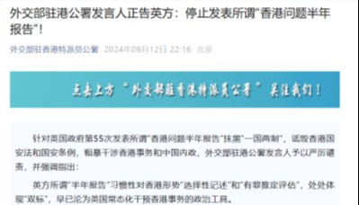 外交部駐港公署發言人:堅決反對英方涉港報告分享到: