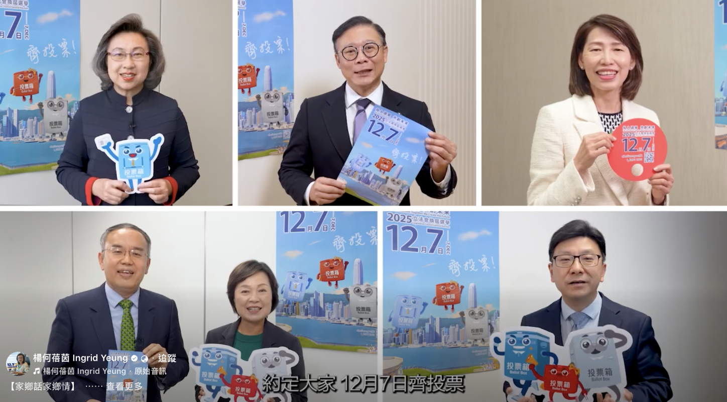 香港新聞網11月13日電 距離12月7日立法會選舉日不足一個月,香港特區政府公務員事務局局長楊何蓓茵13日在社交平台上載影片,邀請幾位重量級嘉賓“出場”,包括一位副司長、三位局長和特首辦主任,以各自的家鄉話呼籲鄉親們在選舉日,善用手中的選票,齊投票,共創未來。 在短片中首先登場,是本身為客家人的律政司副司長張國鈞。他以客家話表示,投票很重要,呼籲一眾鄉親在12月7日投票日,與親朋好友一起投票。 緊接出場的是兩位祖籍福建的局長,分別是教育局局長蔡若蓮和財經事務及庫務局局長許正宇,他們一同以閩南話表示,“12月7號是咱香港立法會選舉的大日子,盼望各位福建鄉親選民,一起去投票,支持咱的候選人”。
