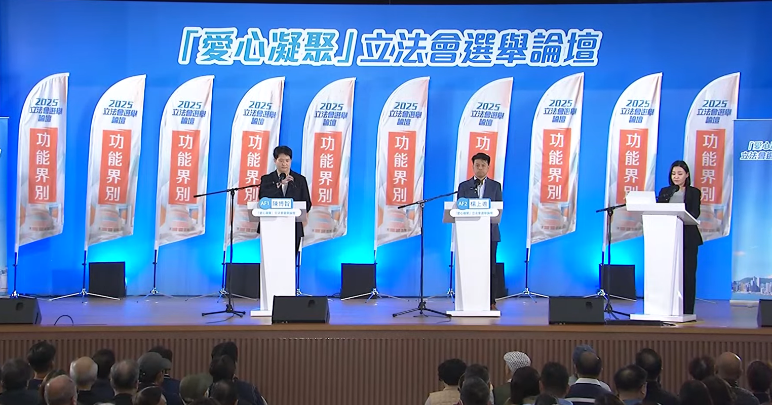 香港新聞網12月4日電 (記者 梁嘉軒)香港立法會換屆選舉12月7日舉行,特區政府恢復舉辦選舉論壇,並因應現時的情況更名為“愛心凝聚”立法會選舉論壇。漁農界功能界別論壇4日下午舉行,兩名候選人分別為民建聯的陳博智和報稱沒有政治聯繫的楊上進。