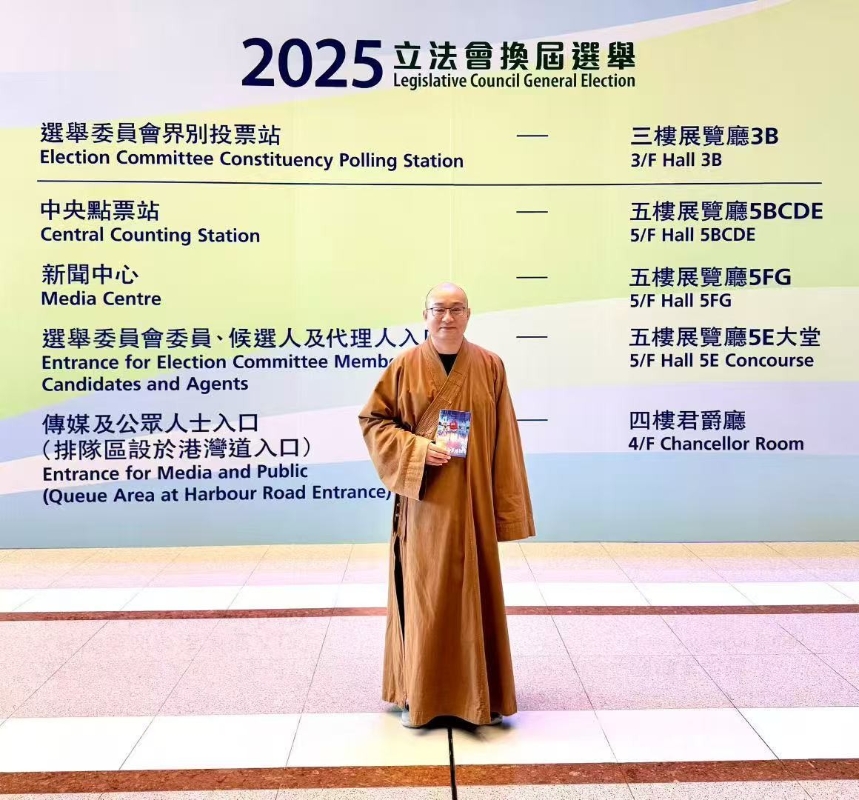 香港佛教聯合會執行副會長宏明大和尚當天到會展中心投票(香港中通社記者 張明臻攝)