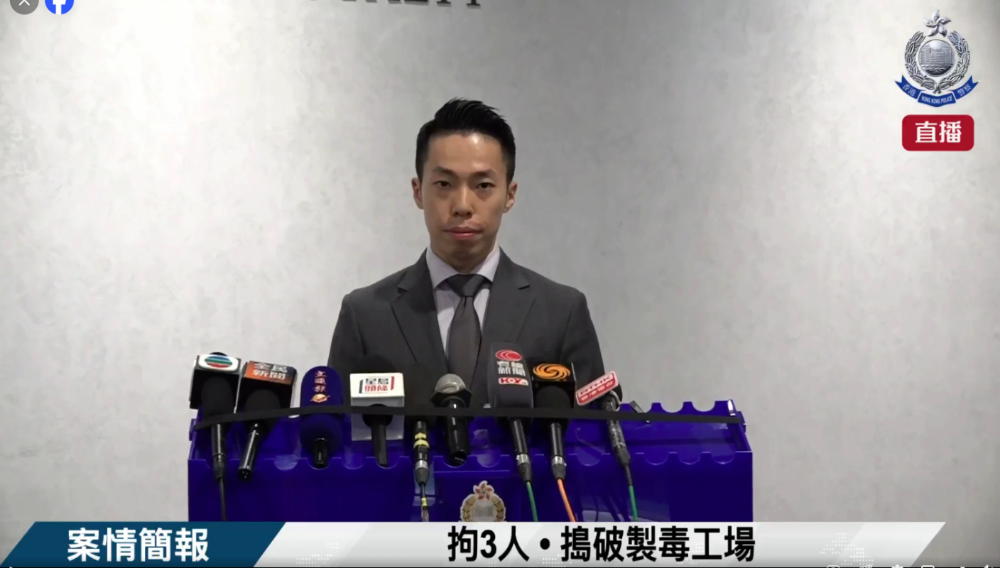 圖片來源:香港警察臉書截圖 警員表示,1月3日突擊搜查元朗一個村屋單位,在單位內搜出大批毒品,包括7.9公斤可卡因、1.2公斤冰毒、741克霹靂可卡因、598克氯胺酮及259粒依托咪酯煙彈,市值約774萬港元。警方亦搜出大量製毒工具,包括電磁爐、煲、溫度計和大量可再封透明膠袋等,相信製毒工場已運作約1個月。 行動中,警方以製造危險藥物、販運危險藥物及串謀販運危險藥物罪,拘捕2名香港本地男子及1名中國內地女子,他們年齡介乎21歲至35歲,分別報稱為學生、歌手及無業。 警方指,3人分別負責製毒、包裝和運送毒品,料有人因欠債,收取販毒集團幾萬至十幾萬港元的酬勞犯案。被捕人士將於5日下午在觀塘裁判法院提堂。(完) 【編輯:林曉惠】