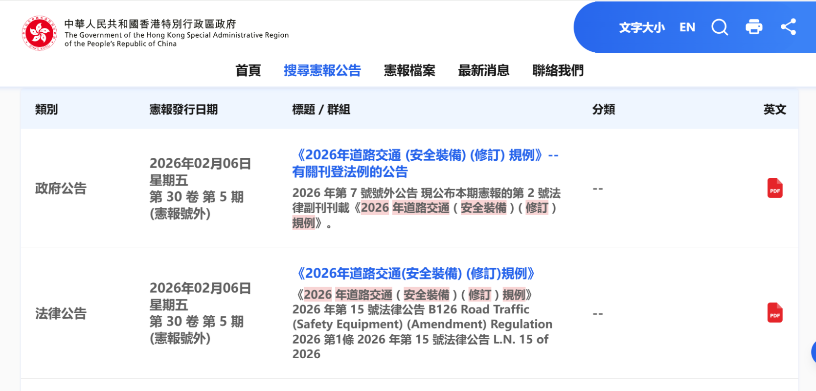 香港《2026年道路交通(安全裝備)(修訂)規例》刊憲並生效分享到: