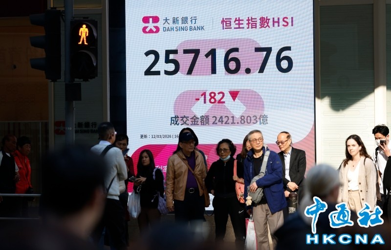 香港中通社3月12日電(記者 張明臻)中東局勢再度緊張,港股略見反覆。恒指12日收報25716點,跌182點或0.7%;大市全日成交2421億港元。