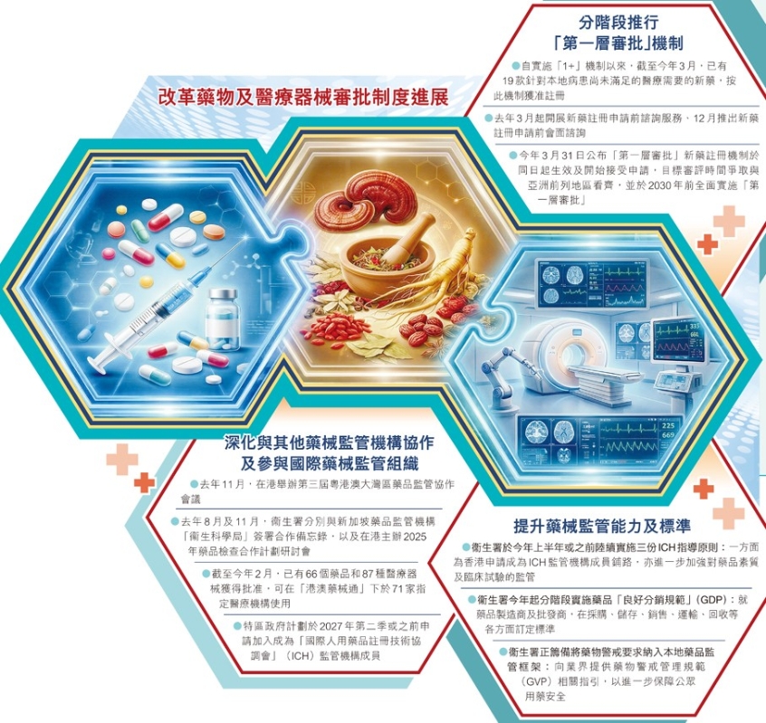 香港藥械審批重要改革:中西藥監管權統一至衛生署署長香港新聞網4月9日電 香港藥物及醫療器械監管領域進行重要改革。香港特區政府醫務衞生局向立法會衞生事務委員會提交文件,就成立香港藥物及醫療器械監督管理中心提出立法建議,包括確立藥械監管中心的法定地位及定位、轉移藥物監管權力、優化現時藥物監管架構等,其中備受關注是將中、西藥物的監管權力轉移至衞生署署長,以統整中、西藥的監管職能,理順監管架構,並與國際標準銜接。特區政府計劃在今年下半年將《條例草案》提交立法會審議。 據香港文匯報報道,醫務衞生局指出,特區政府計劃在今年下半年提交《條例草案》,聚焦於在衞生署下成立藥械監管中心,負責與藥械監管相關的職能。條例草案同時將修訂現時分別規管西藥(即藥劑製品)和中藥的《藥劑業及毒藥條例》(第138章)及《中醫藥條例》(第549章),將藥物監管權力轉移至衞生署署長,以統整中、西藥的監管職能,理順監管架構,並與國際標準銜接。 文件進一步解釋,《條例草案》會修訂《藥劑業及毒藥條例》及其附屬法例,將現時藥劑業及毒藥管理局及其屬下委員會監管藥劑製品及相關牌照商的權力轉移至衞生署署長。而藥劑業及毒藥管理局及相關委員會會予以保留,就藥劑製品的監管向衞生署署長提供意見。 《條例草案》亦會對《中醫藥條例》及其附屬法例作出相應修訂,將現時中藥組及其屬下小組監管中藥/中成藥及中藥牌照商的權力轉移至衞生署署長,而中藥組及相關小組會予以保留,並會就中藥/中成藥的監管向衞生署署長提供意見。 至於藥劑師及中醫監管方面,藥劑業及毒藥管理局、香港中醫藥管理委員會及其屬下的中醫組將繼續履行相關權力及責任,維持現狀不變。醫務衞生局指,這項修訂符合國際上普遍將專業規管與藥物及相關牌照商規管分開的做法。 文件指,是次修訂會將決策權力統一交由衞生署署長行使,並將藥劑業及毒藥管理局、中藥組及各委員會、小組轉為擔任諮詢角色,就相關監管事宜向署長提供意見,減少架構上的重疊,有助縮短決策鏈條,提升整體監管效率。這亦能大幅提升兩套制度在運作上的一致性,為業界提供更清晰、統一的規管環境,推動中、西藥監管制度在架構及程序上逐步融合。 此外,局方亦藉此機會完善藥物規管的上訴機制,提供向原訟法庭提出上訴以外的申訴渠道。 醫療器械規管方面,文件指《條例草案》並不包括規管醫療器械方面的條文。特區政府正推進相關立法準備工作,因應近年國際間最新規管趨勢,全面檢討擬議規管架構,將於今年內向立法會提交立法建議。