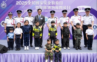 香港中通社圖片 政務司副司長卓永興致辭表示,國家安全關乎包括香港市民在內的全中國14億人民福祉,是安邦定國的重要基石,在維護國家安全、止暴制亂的任務上,警隊一直旗幟鮮明、無畏無懼地堅守崗位,為香港築牢捍衛國安的屏障和成為全世界最安全的城市,作出巨大和無可替代的貢獻。 警務處處長周一鳴致辭指出,在維護國家安全法律制度和執行機制的護航下,香港得以“由亂到治”邁向“由治及興”的新階段。這份來之不易的穩定,正是國家為香港“護航”的生動體現。警隊亦擔當護航者重任,秉持“只有進行時,沒有完成時”的信念,果斷執法、扎實推進國家安全宣傳教育,以及完善國家安全體系。 周一鳴強調,維護國家安全沒有“局外人”,每位市民應盡責為維護國家安全作出貢獻;期望市民通過“全民國家安全教育日”,增強國家安全意識,共同守護國家安全和香港穩定。 活動在金鐘夏慤花園的提子公園舉行,設有仿照船舶造型構建的“護港號”國安教育展覽區。此外,“NSpeed國安號”宣傳車和全新“NSmarties童心護港AI互動平台”通過生動有趣的遊戲,向公眾特別是年輕一代,傳遞“國家安全、人人有責、我做得到”的信息。場內同時展出反恐特勤隊、爆炸品處理課和警犬隊等多個單位的精銳裝備,讓市民認識警隊專業和多元化的工作。(完) 【編輯:劉春】
