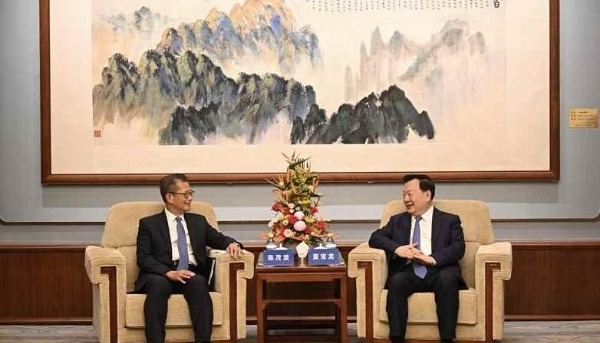 夏寶龍會見香港特區政府政務司司長陳國基、財政司司長陳茂波一行