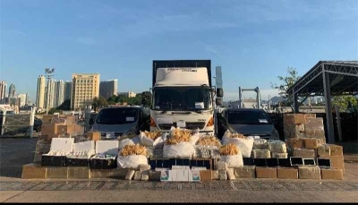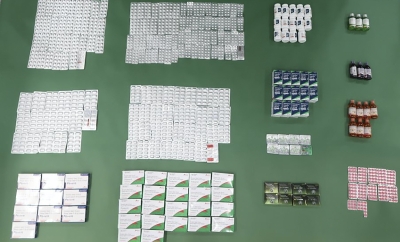 圖為檢獲的懷疑受管制針劑及藥劑製品。香港中通社圖片 據介紹,香港海關於3月30日偵破一宗涉嫌利用內河船走私的案件,並在一艘由香港出發前往澳門的內河船上,檢獲大批懷疑走私貨物,包括約400萬件懷疑藥劑製品、約2.6萬支懷疑受管制針劑以及約7公斤雪茄,估計市值共約3500萬港元。 另外,海關人員於4月8日偵破一宗走私懷疑受管制針劑及藥劑製品的案件。海關人員當日鎖定上水一間店鋪,涉嫌走私受管制藥物,並拘捕一名懷疑涉案的28歲男收貨人和32歲男店員。其後,海關再拘捕涉案店鋪的33歲女負責人。案件中,海關共檢獲5600支減肥針劑和約三萬粒懷疑藥劑製品,市值約477萬港元。(完) 【編輯:馬華】