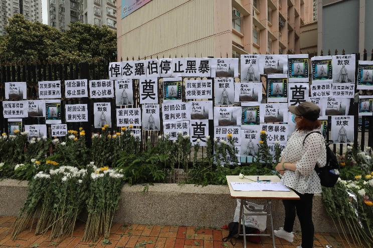 圖為2020年5月13日,羅伯遭暴徒擲磚身亡半周年,市民自發到上水北區大會堂悼念。(中新社資料圖) 其中一名發起人表示,她是自發通知街坊一齊悼念羅長清,與朋友預備好鮮花,供市民獻花鞠躬,希望悼念活動能喚醒市民,不希望再有暴力事件發生。有參與悼念的市民表示,專程從大埔住所到場,對羅長清遭磚頭擊斃感痛心,去年亦有悼念,盼盡點心意。 【編輯:李雪萍】