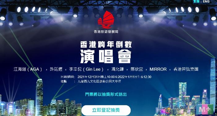 香港跨年倒數演唱會今日開始抽獎登記。(官網截圖) 登記者須已年滿18歲,同行者年滿12歲,兩人均須在下月13日或之前在香港完成接種新冠疫苗。旅發局強調,門票並非先到先得,登記的先後次序亦不會影響中獎機會。登記期本月24日下午5時30分結束,結果下月3日公布。座位於抽獎時由電腦系統隨機編配。 香港跨年倒數演唱會將於12月31日晚上10時至元旦凌晨12時半,旅發局將透過電視及網上全球直播。 【編輯:丘志彬】
