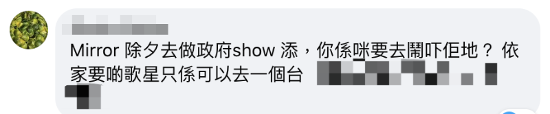有網友就諷刺這位上不了TVB的藝人:“別人去哪裏演出是別人的自由,但你連上的資格都沒有啦!”還有網友揶揄指,早前被阮民安讚揚的香港男團Mirror,將參演香港旅發局的跨年倒數演唱會,明顯與“黃絲”反港府的立場相違背,“你是不是要去罵他們啊?”