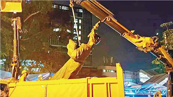大學紛驅“邪神” 移除違規雕像繼香港大學清理“國殤之柱”後,抹黑國家、玷污中文大學校園已有十餘年的所謂“女神像”,在昨日(24日)早上6時許,被中大校園的保安及十多個工人利用吊機車搬離原放於大學火車站對面的大學入口廣場,其間有大量警察在場駐守。中大校方隨後發聲明強調,大學早在2010年已表明決定不予批准雕像擺放,其後也從未准許該雕像於校園展示,經內部評估後決定移走雕像。此外,嶺大、城大及理大亦相繼於校園“驅神”。