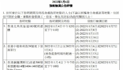 香港新聞網1月24日電 香港特區政府今日(24日)凌晨刊憲,將35個地方納入強制檢測公告,要求於指定期間曾身處有關指明地方的人士,接受新冠病毒檢測。