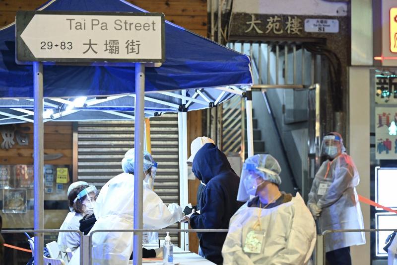 政府昨晚對荃灣大壩街大苑樓進行圍封檢測。(政府新聞處)