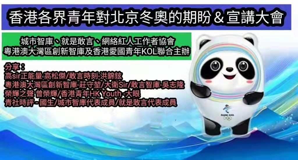 此外,城市智庫召集人洪錦鉉在活動上分享了五點倡議,包括: 1. 呼籲全球各國應藉著奧運會體育盛事,加强體育和人民交流和合作,促進世界和平! 2. 支持北京冬季奧運會,祝願北京冬季奧會圓滿舉辦! 3. 反對將北京冬季奧運會政治化,反對境外反華NGO干擾北京冬季奧運會,譴責任何損害奧林匹克精神的政治言行! 4. 推動香港特區政府及各界加强宣傳北京冬季奧運會,宣揚奧林匹克精神! 5. 推動香港體育界與內地體育界的交流和合作,促進香港體育的發展,幫助香港青年人的發展!(完) 【編輯:黎金良】