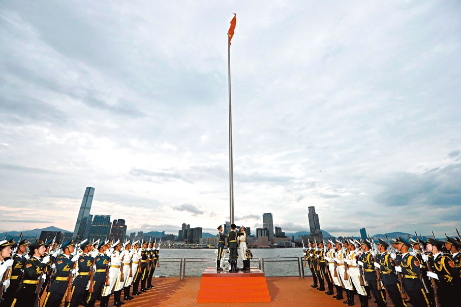 香港新聞網1月31電 農曆虎年將要來到,解放軍駐香港部隊在中區軍用碼頭首次舉行升國旗儀式,迎接新春佳節的到來。 據香港《文匯報》報道,昨日(30日)清晨,解放軍駐香港部隊在中區軍用碼頭首次舉行升國旗儀式,並為全國人民送上誠摯祝福。當日,維多利亞港畔的中區軍用碼頭上,解放軍駐香港部隊領導機關和陸海空三軍近300名官兵代表整齊列隊,莊嚴肅立,向包括香港市民在內的全國人民拜年。 “護旗方隊,齊步走!”昨日上午7時許,78名駐香港部隊三軍儀仗隊員組成的護旗方隊,邁着整齊穩健的步伐,護衛國旗走出中環營區,穿過綠意盎然的添馬公園,走進中區軍用碼頭。 1997年7月1日,駐香港部隊第一次在中環營區升起五星紅旗,洗刷百年民族恥辱。在2022年虎年春節到來之際,駐軍首次在中區軍用碼頭舉行升國旗儀式,充分展示駐軍官兵威武文明形象,充分彰顯這支光榮部隊牢記初心使命,堅決貫徹“一國兩制”偉大方針、堅決維護國家主權安全和香港繁榮穩定的決心意志。