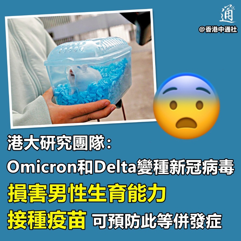 香港新聞網2月21日電 奧密克戎殺入香港社區,有聲音卻稱其是“大號流感”。不過,香港大學研究團隊發現,倉鼠即使感染中量的新冠病毒,亦會出現急性睾丸損傷、慢性睾丸萎縮,以及血清內的睾丸酮下降,Omicron和Delta病毒都能引起類似的損傷,專家強調,接種新冠疫苗可預防此等併發症。