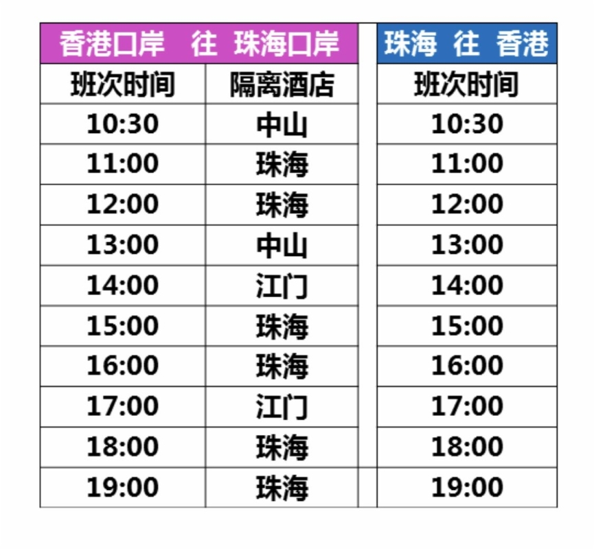 根據珠海市新冠肺炎防控指揮部疫情防控組最新要求,經香港入境人員在登乘港珠澳大橋穿梭巴士(金巴)前,必須出示由粵港兩地互認的香港核酸檢測機構,且必須由檢測機構的工作人員採樣、 送檢檢測後出具的24 小時內核酸檢測陰性報告。不得由入境人員自行採樣送檢。使用自行採樣送檢後出具的核酸陰性報告、入境時篩查出陽性的人員,造成疫情傳播的,將按內地法律法規依法追究責任。 港珠澳大橋穿梭巴士還提示,旅客必須先於微信公眾號“港珠澳大橋穿梭巴士”、wechat ID:hzmbus或登入網頁www.hzmbus.com預購車票,現場不設售票。而根據政府部門的通知,由2022年3月1日起,香港往返珠海(雙向)班次服務作出調整。 【編輯:王瑶】