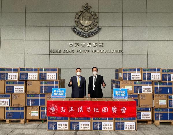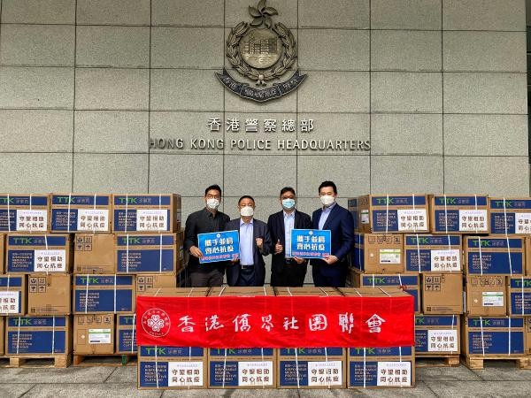 香港新聞網3月28日電 3月28日,香港僑界社團聯會發起支援警隊抗疫行動,向香港警察總部捐贈167箱(5010件)防護服及酒精消毒紙巾20箱(100000片),以示支援香港警察在抗疫工作中的貢獻。 香港僑界社團聯會會長黃楚基表示,香港第五波疫情持續近3個月,警隊前線人員一直堅守在抗疫第一線,這次贈送一批前線人員急需的防護服和酒精消毒紙巾,以表示市民對警隊前線人員無私奉獻的慰問和感謝,為他們加油打氣。“我們相信只要香港各界眾志成城,齊心抗疫,一定能戰勝當前第五波疫情”。
