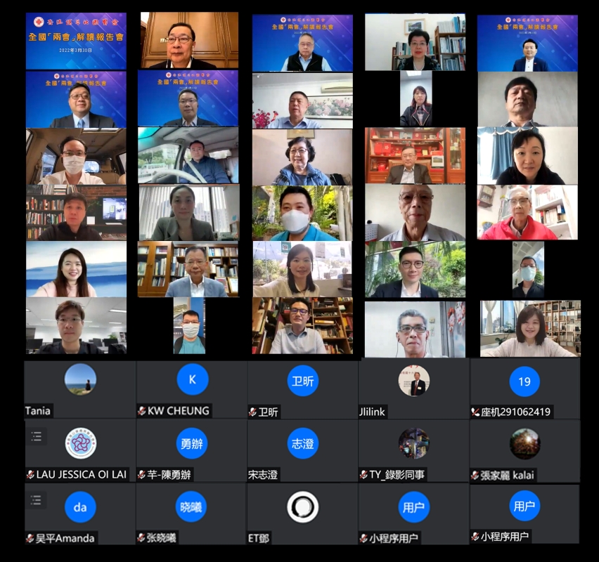 港區全國人大代表陳勇分享了從收集民意到提案再到發表的過程,並介紹他提出的18項建議,涉及民生、環保等各方面。他還指出,全國兩會召開相關人員近萬人,卻做到零確診,防疫措施給香港與內地“通關”做了很好的示範。另外,他又介紹中央非常關切香港疫情情況,並支持香港發展經濟,强調建好金融創科中心,積極融入國家發展大局,希望香港青年多了解國家最新發展方向和政策。 全國政協常委、香港僑界社團聯會首席主席余國春表示,今年是進入全面建設社會主義現代化國家、向第二個百年奮鬥目標進軍新征程的重要一年,下半年將召開黨的二十大。新的一年,政府工作的各項任務完整、準確、全面貫徹新發展理念,繼續把增進人民福祉、促進人的全面發展作為一切工作的出發點和落腳點。作為香港僑界的一份子,要以實際行動迎接二十大的勝利召開。 全國政協委員、香港僑界社團聯會會長黃楚基、世界衛生組織前總幹事、全國政協常委陳馮富珍亦於缐上出席分享會。(完) 【編輯:張明臻】