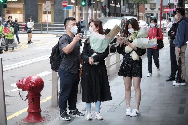 香港新聞網4月1日電 “永遠懷念張國榮”,“因為有你,星河更燦爛”,每年的四月一日,不少張國榮(哥哥)的歌迷會來到香港文華東方酒店外,獻花留下卡片追思哥哥。重疫下的香港4月天,也不例外,只是更讓人想起19年前香港正經歷的非典疫症。 這是Alice第二次來到文華酒店為哥哥獻花。沒來香港讀書前,Alice會在這一天為哥哥發一條專屬於他的朋友圈。來到香港第一年,她便在四月一日早早出門,在旺角花園街的一家小店裡,為哥哥買了一束粉粉的花。