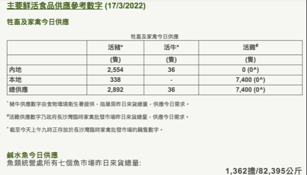雞蛋方面,批發市場供應繼續穩定,過去一星期平均每日供應約390萬隻,與去年平均每日供應量相若。4日內地進口本港的冰鮮豬肉貨量約43公噸,活豬供應正常。內地供港冰鮮家禽4日貨量逾16萬隻,而本地屠宰的活雞逾1萬隻,供應充足。 食米方面,按特區政府要求,現時食米貯存商要儲備足夠市民15天的食用量存貨。業界表示除了政府規定外,一般也會儲存多一倍存貨,足夠香港市民一個月食用。可以儲存的食品,如冷藏肉一般會有約3個月的庫存。 (完) 【編輯:崔靜雯】