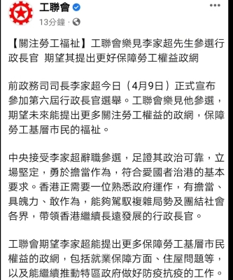 郭炳聯指,李家超投身公僕40餘年,行政經驗豐富,近年更出掌要職,處理社會事件,落實香港國安法和完善選舉制度安排,立場堅定,勇於擔當,實現香港“由亂及治”的重大歷史轉折。  (完)