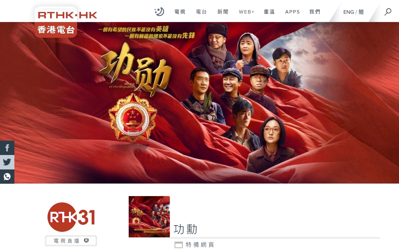 香港新聞網4月8日電 4月10日星期日早上11:45,香港電台將首播由中國國家廣播電視總局組織創作的人物傳記題材電視劇《功勳》,是國家廣播電視總局“理想照耀中國——慶祝中國共產黨成立100周年”展播活動劇目。今次首度由港台配上粵語的48集劇將安排逢星期六、日早上播出。